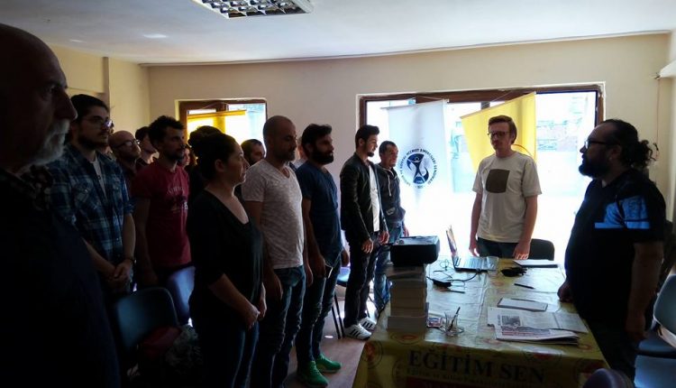 Manisa işçilerinin toplantısı iş cinayetlerine kurban giden kardeşlerimiz için bir saygı duruşu ile başladı. İDP sözcüsü Sedat Durel Türkiye’de işçi düşmanlığının sebepleri ve işçilerin bağımsızlığının önemi hakkında bir sunum yaptı. Sonrasında metal sektöründen deneyimlerin ve işyerlerindeki somut sorunlara karşı önerilerin paylaşılması ve başarılı direnişlerini henüz tamamlamış olan ayakkabı işçilerinin konuşmasının ardından her sektörden işçinin tartışmaya katılımı ile toplantı tamamlandı.