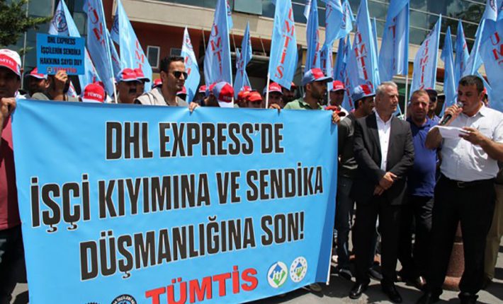 Uluslararası taşımacılık şirketi DHL’de TÜMTİS (Tüm Taşıma İşçileri Sendikası) içinde örgütlenen işçiler, bundan beş ay önce işyerlerinde çoğunluğu sağlayarak sendikanın toplu iş sözleşmesi yapabilmesine olanak sağlamışlardı. Yasal olarak hiçbir sorun bulunmamasına rağmen türlü bahanelerle bu yetkiyi engellemek isteyen patron, bu sürecin başını çeken öncü dokuz işçiyi işten çıkardı. Bunun üzerine DHL’in Bağcılar’daki binası önünde başlatılan direniş 138 gündür devam ediyor. Direnişteki işçiler arasında 5 ve 14 yıllık çalışanlar da var.