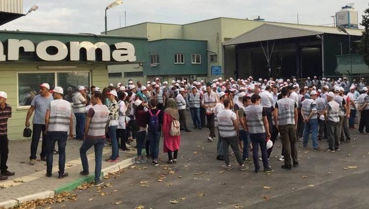 Hatırlanacağı üzere Bursa’da yer alan Aroma meyve suyu firmasının iki fabrikasındaki işçiler, 1 Ocak 2017’de başlayan toplu iş sözleşmesi görüşmelerinden sonuç çıkmayınca grev kararı almışlardı. İşçilerin temelde üç talepleri vardı: Hak, ücret ve kadro. İşçilerin istekleri sosyal hakların artırılması, ücret zammı ve mevsimlik işçilerin kadroya alınması yönündeydi. 2017’nin Temmuz ayında yapılan toplantıda sendikanın taleplerinin hepsi patron tarafından reddedildi. Ocak ayı itibari ile kazanılan ücret farkları da geri çekildi. Sendikanın önerileri de kabul edilmeyince, işçiler 17 Ağustos 2017’de greve çıkmıştı. Eylül ayında Aroma işçilerinin grevi kazanımla sonuçlanmış ve aşağıdaki şartlar kabul edilmişti: İşçilere ilk yıl brüt 430 TL, ikinci yıl ise enflasyon artışı kadar zam, 4 TL kıdem zammı ve 1,5 puan sözleşme farkı getirilecek. Kıdem zammı olan 4 TL ikinci yıldan itibaren uygulanacak. Mevsimlik çalışan 38 kişiden 10’u Ocak ayında kadroya alınacak. Geriye kalan 28 işçi ise 2018 yılı içinde kadroya geçecek.