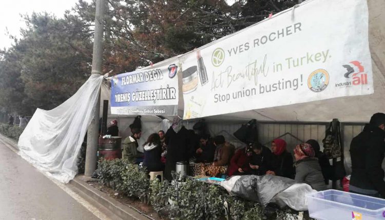 Sendikalı oldukları için işten atılan Flormar işçilerinin direnişi 219. gününe ulaştı. Daha önce ses aracını kullanmaları ve çadır kurmaları yasaklanan işçilere geçtiğimiz günlerde soba yasağı da gelmişti. Yasaklara rağmen direnen işçiler, battaniyelerle ısınmaya çalışarak fabrika önündeki direnişlerini sürdürüyorlar. Eylemlerin başlamasıyla beraber fabrikanın etrafına dikenli tel ve branda çekilmiş, içerideki işçilerle direnişçi işçilerin teması kesilmişti. Dışarıyı gözetlemek için bir sürü kamera yerleştirilmişti. Bir yandan sivil polis de çoğu zaman fabrikanın önünü boş bırakmıyor ve direnişi sürdüren işçilerin sesine polis telsizleri eşlik ediyor.