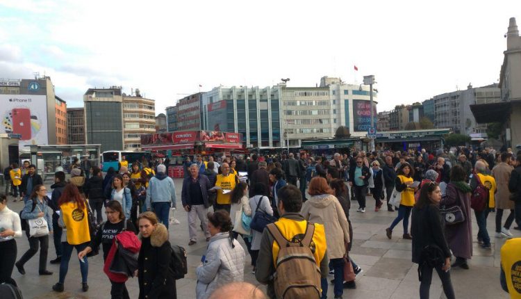 23 Kasım Cumartesi günü İstanbul Emek, Demokrasi ve Barış Platformu Kadıköy’de Eminönü iskelesi önünde 8 Aralık’ta yapacağı krize karşı mitingi için bir basın açıklaması gerçekleştirdi ve ardından da bildiri dağıtımına geçildi. İnsanca bir yaşam, barış, demokrasi ve adalet için düzenlenen bu miting öncesinde emekçi halklara 8 Aralık için bir çağrı yapıldı.