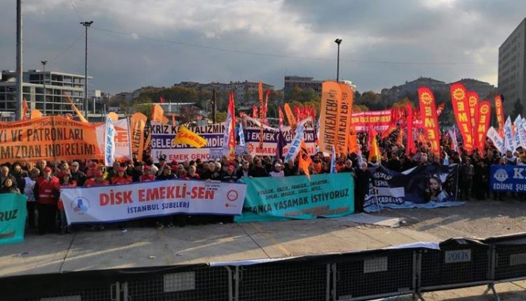 Saygılı’nın ardından emeklilikte yaşa takılanlar adına konuşan Mustafa Avcı, emeklilikte yaşa takılanlar için acil şekilde yasa çıkartılmasını istediklerini dile getirdi. İstanbul Tabip Odası Genel Sekreteri Osman Öztürk ise emekçiler için sefaletten ötesini vaad etmeyen 2020 bütçesine ve kayyumlara dikkat çekerek, “Onlar bir avuç, biz milyonlarız. İşsizliğe, zamlara, tek adam rejimine karşı aylardır mücadelemizi sürdürüyoruz. Mücadelemizi büyüterek devam ettireceğiz,” dedi.