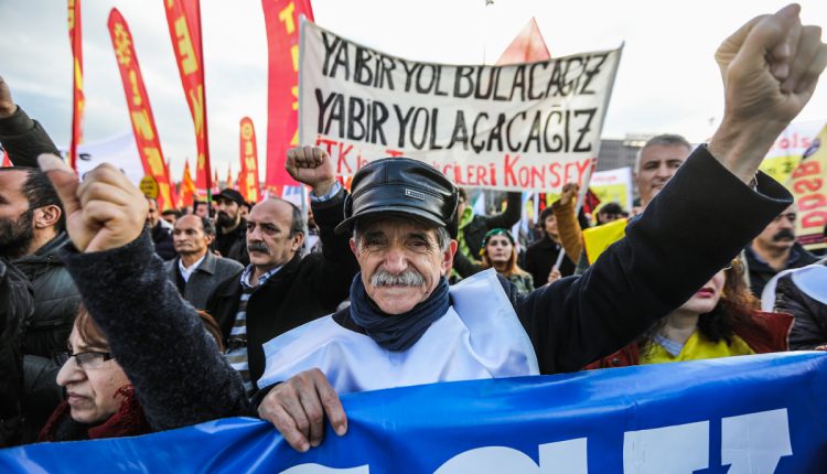 Ama öte yandan asgari ücret görüşmeleri döneminde kitlesel bir protesto sadece 8 Aralık günü İstanbul Emek, Barış ve Demokrasi Güçleri’nin çağrıcılığını yaptığı “İnsanca yaşamak istiyoruz” mitingi oldu. Bu mitingde DİSK ve KESK sendikalarının yönetimleri vardı ancak diğer sendika konfederasyonları yoktu. Üstelik sendikaların tabandan katılımı da son derece sınırlıydı.