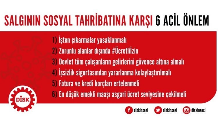 DİSK’in kısa çalışma ödeneği hakkında 25 Mart 2020 tarihinde yayımlanan basın bildirisini paylaşıyoruz.