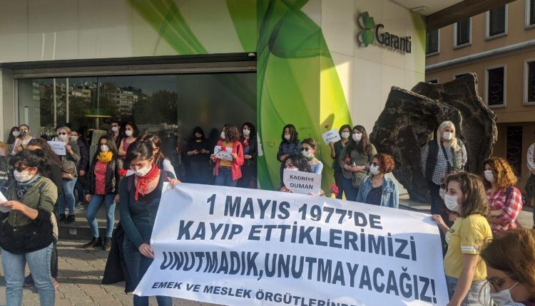 Dünyanın dört bir yanında hızla yayılmaya devam eden koronavirüs salgını karşısında hükümetin yetersiz ve patronların çıkarlarını önceleyen politikaları nedeniyle savunmasız kalan emekçiler, 1 Mayıs öncesinde tüm zorluklara rağmen dayanışmada. İstanbul Emek Meslek Örgütleri’nden KESK, DİSK, TMMOB ve TTB’den kadınlar, 1 Mayıs 1977’de yaşamını yitiren işçi kadınları ve tüm sınıf kardeşlerini anmak için bugün Taksim’deydi. Kadınların, ellerinde kanlı mayıs günü katledilen kız kardeşlerinin isimlerinin yazılı olduğu dövizlerle gerçekleştirdiği anmada, salgının yayılmasını engellemek için temel önlem olarak sayılan fiziksel mesafe kuralına da uyuldu.