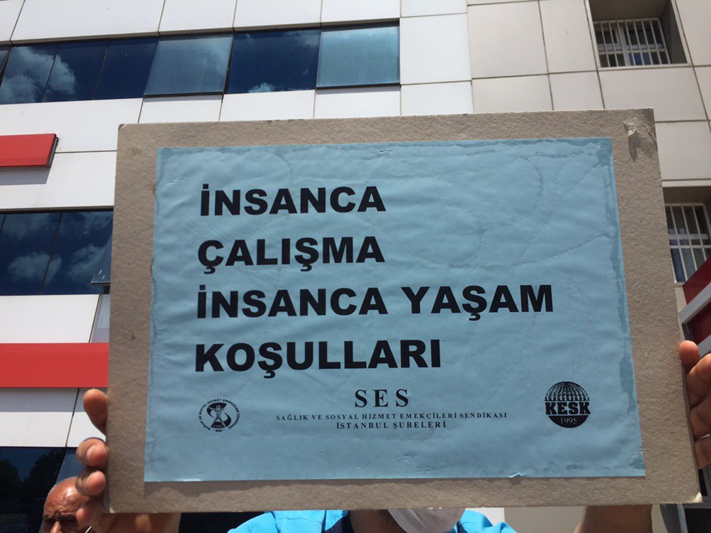 Sağlık ve Sosyal Hizmet Emekçileri Sendikası İstanbul-Aksaray Şubesi “Hayat Pahalılığına Son, İnsanca Yaşayacak Gelir İstiyoruz” çağrısı ile Eyüp Devlet Hastanesi önünde 17 Temmuz Cuma günü saat 12.30’da bir basın açıklaması gerçekleştirdi.