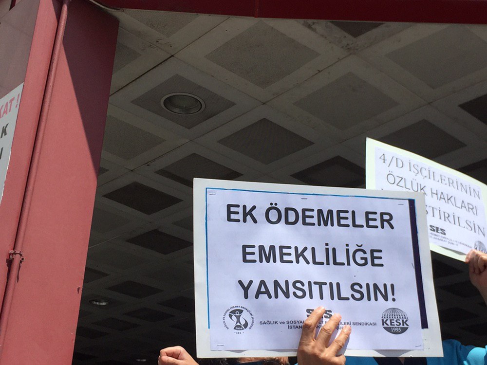 - Ek ödemelerin maaşlara eklenmesini, emekliliğe yansıtılmasını, talep ediyoruz.