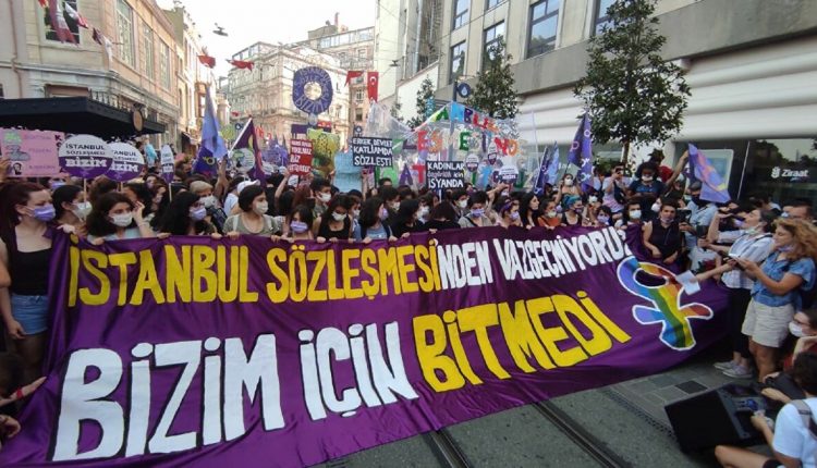 20 Mart gecesi Tek Adam rejimi tarafından alınan bir kararla Türkiye’nin İstanbul Sözleşmesi’nden çekilmesinden bu yana mücadelemiz çoğalarak devam ediyor. Önümüze sürekli yeni engeller çıkarılsa da, kadınlar ve LGBTİ+’lar olarak sokakları doldurmaya devam ediyoruz. 19 Haziran Cumartesi günü “İstanbul Sözleşmesi’nden Vazgeçmiyoruz” Mitingi’nde farklı illerden yüzlerce kadın İstanbul Maltepe’de buluştuk. 26 Haziran’da Taksim’de Onur Haftası’nı kutlamak ve nefret cinayetlerini protesto etmek için kadın ve LGBTİ+ örgütleri olarak tüm polis ablukasına rağmen bir araya geldik. Ve en son 1 Temmuz’da Taksim Tünel’de tüm öfkemiz ve isyanımızla hep birlikte “İstanbul Sözleşmesi’nden Vazgeçmiyoruz! Bizim için bitmedi,” dedik ve son yılların en kitlesel ve coşkulu kadın ve LGBTİ+ eylemini gerçekleştirdik.