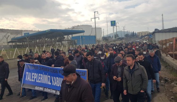 Biz ilk önce sadece ücret talebiyle çıkmıştık. Gemide bozma yapan ustalar için 500, tersanenin sahasında bozma yapanlar için 450, yardımcılar için de 350 lira bizim talep ettiğimiz ücretlerdi. Eylem başlayınca bu talebimize ek olarak 1) sigortalarımızın aldığımız ücret üzerinden yatırılması, 2) iş ekipmanlarının işveren tarafından karşılanması, 3) hafta sonu tatili, 4) zorunlu izinlerde ve yağmurlu günlerde yevmiye kesintilerinin kaldırılması, 5) iş güvenliği ve iş sağlığı koşullarının uygulanması gibi talepler de gündeme gelerek taleplerimizin arasına girdi.