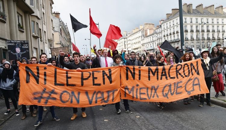 Pazar gecesi sonuçlar belli olduğunda Paris sokakları bomboştu. Macron’un halktan aldığı oy, büyük ölçüde halkın Le Pen’in aşırı sağının zafere ulaşmasını engellemek istemesinden kaynaklanıyordu. Ancak seçimlerden önceki günlerde “Ne Macron ne Le Pen” sloganıyla önemli öğrenci ve işçi seferberlikleri yaşandı.