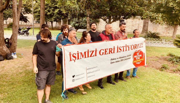 İçişleri Bakanı Süleyman Soylu’nun “İstanbul Büyükşehir Belediyesi’nde 557 terörist var” diyerek hedef göstermesi sonrası haksız bir şekilde kod 42 bahane edilerek işten çıkarılan İBB işçileri direnişlerini belediye önündeki Saraçhane Parkı’nda sürdürüyor. İşçi Demokrasisi Partisi’nin direnişin 48. gününde ziyaret ettiği işçiler, talepleri karşılana kadar bu mücadeleyi sürdüreceklerini ifade ettiler.