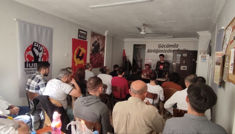 Gazete Nisan yazarı Sedat Durel üç ana başlık etrafında bir sunum gerçekleştirdi. Durel ilk olarak sendikaların işçi örgütleri olarak nasıl doğduklarını ve geliştiklerini özetledi. İşçilerin mücadelesi sayesinde sendikaların yasallaştığını ve kitleselleştiğini vurguladı. İkinci olarak, sendikaların içinden zamanla neden ve nasıl sendikal bir bürokrasi doğduğunu ve bu bürokrasinin sendikaları mücadele örgütleri olmaktan nasıl uzaklaştırdığını ele aldı. Bununla birlikte, bürokratikleşmenin sendikalar için kaçınılmaz bir kader olmadığını, işçilerin sendikalarda işçi demokrasisi yönünde mücadelesinin vazgeçilmez zorunluluğunu ifade etti. Son olarak, Türkiye’de ve dünyada işçi sınıfının önünde ikili bir görev olduğunu belirtti. En temel haklarımızı savunabilmek için yürüttüğümüz sendikalaşma mücadelesiyle, sendikaların sendikal demokrasi temelinde işlemesi mücadelesinin ayrılmaz bir bütün oluşturduğunun altını çizdi.