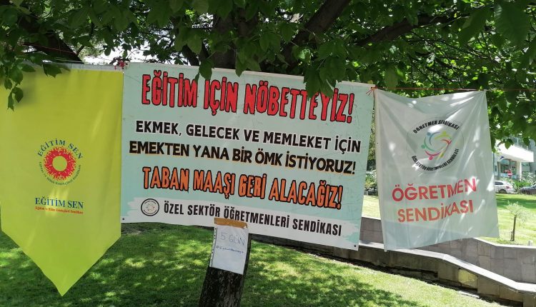 Öğretmen adayları kamuda istihdam edilmek için ter dökerken diğer yandan da çalıştıkları özel kurumlarda büyük bir emek mücadelesi veriyor. Özellikle de Özel Sektör Öğretmenleri Sendikası’nın eylemleri oldukça ses getirmekte. Nitekim 26 Mayıs günü Ankara’da Milli Eğitim Bakanlığı önünde başlatılan nöbet eylemi diğer şehirlerde de Milli Eğitim Müdürlükleri önünde devam ediyor. Taban maaşın ÖMK kapsamına alınması ve ekonomik ve özlük haklarının güvenceye alınması talepleriyle yapılan oturma eylemleri mücadeleci sendika ve siyasi yapıların destekleri ile sürdürülüyor.