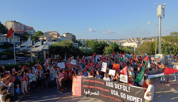 Filistin Eylem Komitesi’nin çağrısıyla 7 Temmuz Pazar günü İstanbul Sarıyer’deki ABD Konsolosluğu önünde büyük bir yürüyüş ve basın açıklaması düzenlendi.
