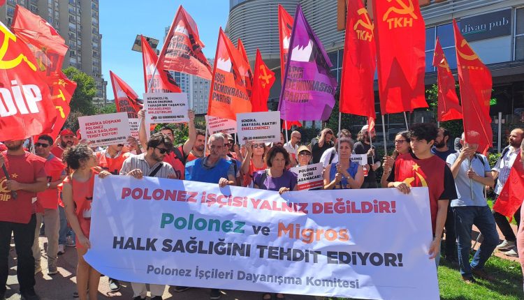17 Ağustos Cumartesi günü, 30 gündür sendikal hakları için direnen Polonez işçilerinin direnişiyle dayanışma göstermek için bir araya gelen Polonez İşçileri Dayanışma Komitesi Migros Genel Merkezi önünde bir basın açıklaması gerçekleştirdi.