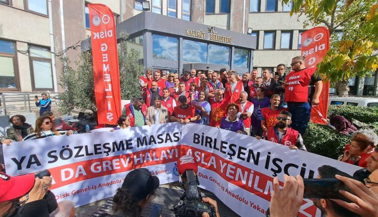 DİSK Genel-İş Sendikası üyesi Kadıköy Belediyesi işçileri, Kadıköy Belediyesi iştirak şirketi KASDAŞ ve temsilcisi Sosyal Demokrat Kamu İş Verenleri Sendikası (SODEMSEN) ile dört aydır süren toplu iş sözleşmesi görüşmelerin tıkanmasına ve dayatılan sefalet zammına karşı grev kararını açıkladı. 24 Ekim Perşembe günü Kadıköy Belediyesi önünde toplanan DİSK Genel-İş İstanbul Anadolu Yakası 1 No’lu şube yönetimi ve belediye işçileri, basın açıklamasının ardından belediye binasına grev kararını astı.