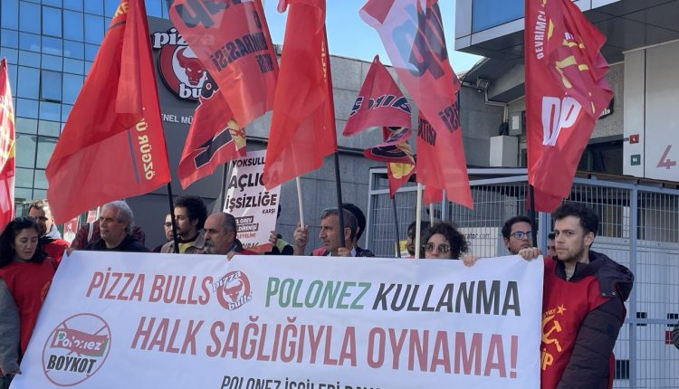 Polonez İşçileri Dayanışma Komitesi, Çatalca Polonez fabrikasında çalışan 146 işçinin Tekgıda-İş Sendikası’na üye olmaları sebebiyle işten atılmalarının 100. gününde, 26 Ekim Cumartesi günü Ümraniye’de Pizza Bulls Genel Müdürlüğü önünde bir basın açıklaması gerçekleştirdi.