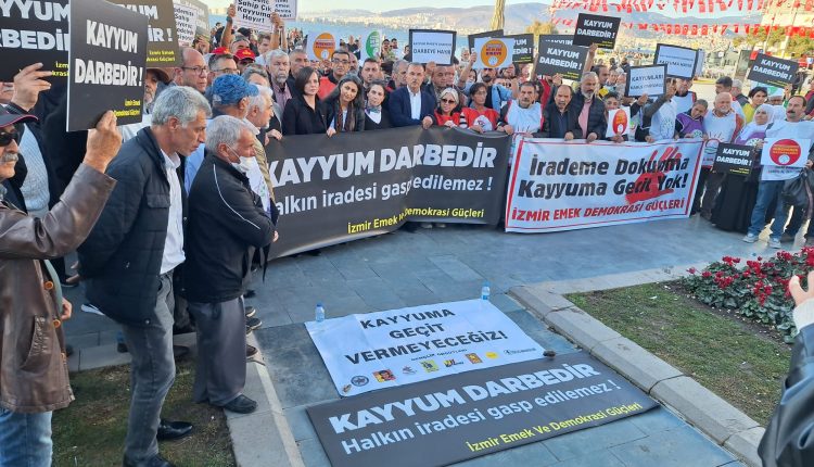 İzmir Emek ve Demokrasi Güçleri Konak ilçesindeki Cumhuriyet Meydanı’nda “İrademe dokunma, kayyuma geçit yok!” şiarı ile eylem gerçekleştirdi.