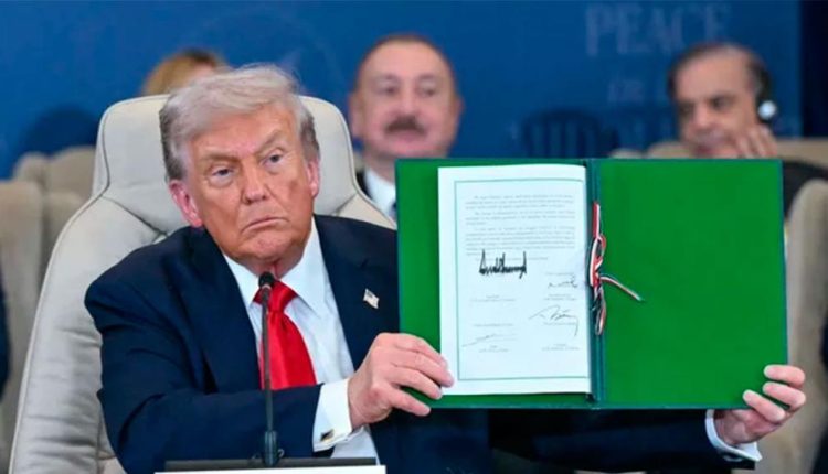 الوثيقة التي حملت عنوان “إعلان ترامب من أجل السلام والازدهار الدائمين” وُقعت من قبل ترامب، والرئيس المصري عبد الفتاح السيسي، ورئيس الدولة التركية رجب طيب أردوغان، وأمير قطر تميم بن حمد آل ثاني.