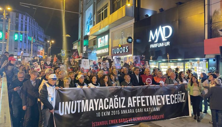10 Ekim Ankara Gar Katliamı’nın 10. yılında İstanbul Emek, Barış ve Demokrasi Güçleri’nin çağrısıyla Kadıköy’de gerçekleştirilen kitlesel eylemde adaletin yerini bulması talebiyle yüründü.