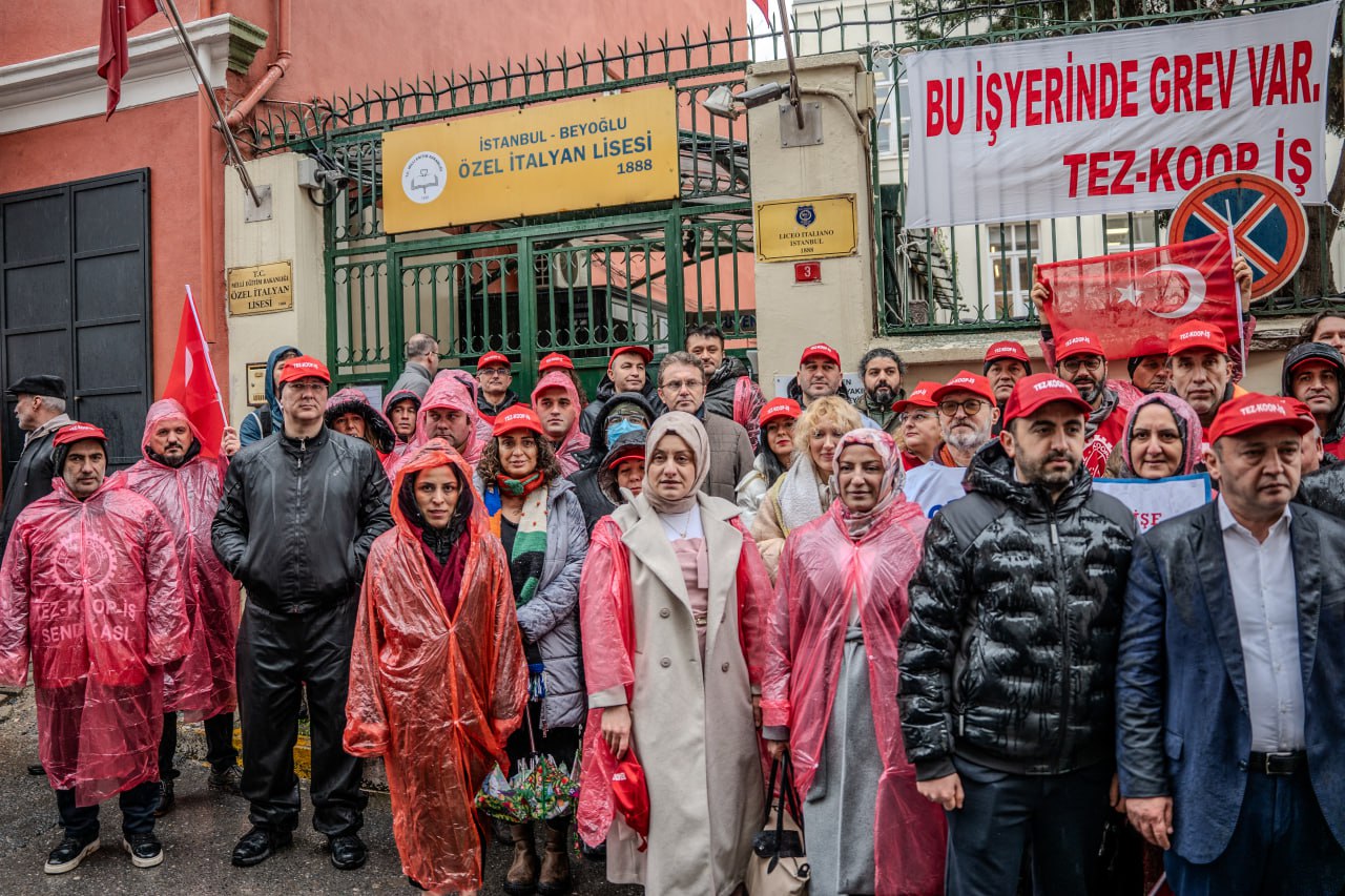 Mevcut eğitim-öğretim yılının ikinci dönemi başlarken Özel İtalyan Lisesi öğretmenleri, Toplu İş Sözleşmesi görüşmelerinde taleplerinin dikkate alınmaması üzerine 2 Şubat’ta greve çıktı. Greve çıkan öğretmenlerini yalnız bırakmayan öğrenciler okul koridoru, merdiven ve sınıfların penceresinden alkışlarla desteklerini gösterdi. Öğrencilerin yanı sıra birçok veli de grevci öğretmenleri desteklemek için okulun önünde toplandı.